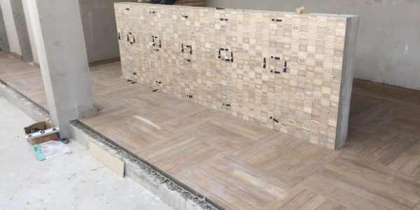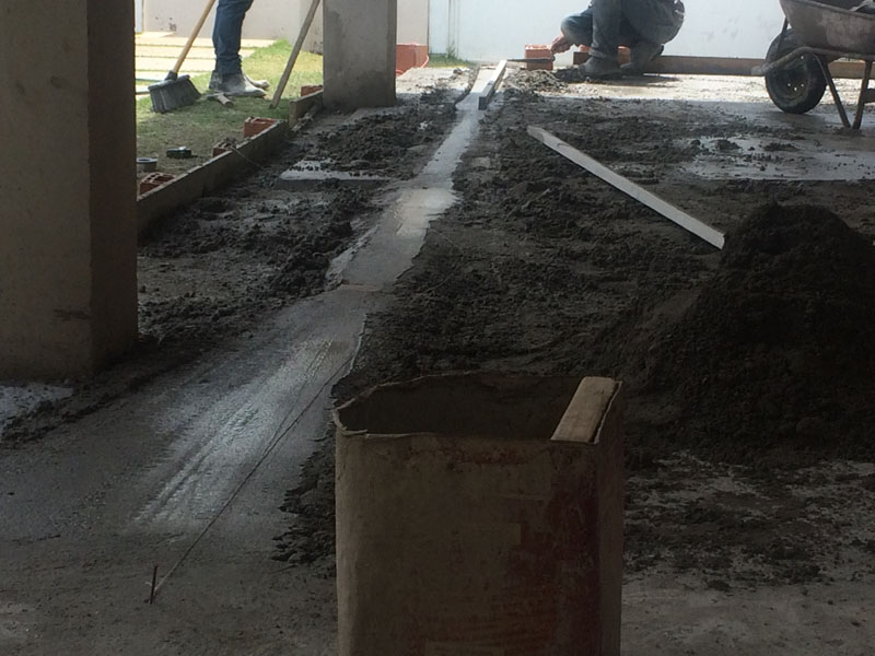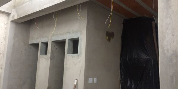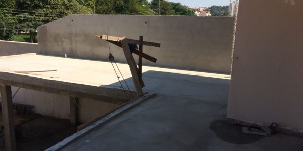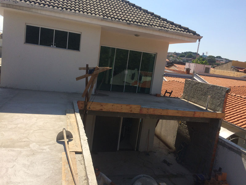 Construção de pilares, vigas e 45 m² laje para garagem, impermeabilização líquida e instalação de porcelanato;